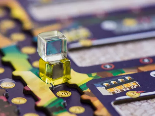 On n'en fera pas une tonne sur le matériel qualitatif de ce jeu : un simple coup d'oeil aux photos et vous aurez deviné que c'est vraiment très réussi, du plateau réversible central aux plateaux personnels des joueurs en passant évidemment par ce qui saute immédiatement aux yeux : de nombreux bâtiments différents que vous allez vous disputer les uns et les autres pour en tirer profit !